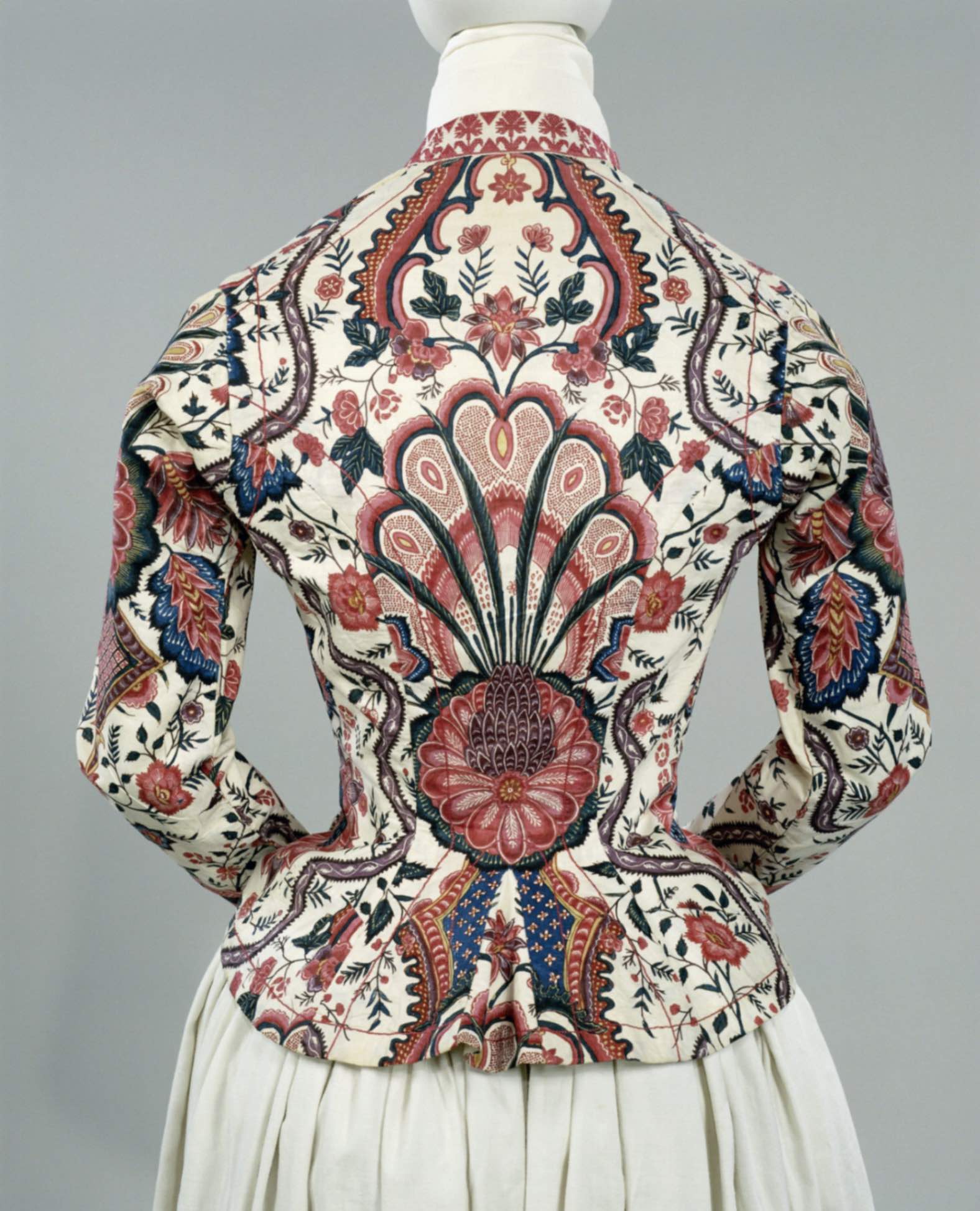At the beginning of the 17th century, the Dutch East India Trade Company (VOC) was looking to make a profit and competed for the growing and lucrative spice trade. In 1604 the VOC took over the Moluccan islands from the Portugese1. The spice trade created the perfect circumstance for the start of the Dutch “Golden Ages”2. These spices were attained by trading with, among other things, a colourfully patterned cotton fabric called chintz which was produced in India. While the fabric was initially used as trade-ware, soon the attention on this fabric with its colourful lasting patterns caught the attention of Dutch high society. The fabric started to be used as decoration for the walls, and later was introduced into fashion adapting the fabric into garments3. The popularity of the fabric caused the VOC to issue an ‘Eisen van retour’4 in 1664, ordering the import of chintz for the Dutch market5. This was the start of a craze with this fabric which lasted for two centuries and we still see its effects today.