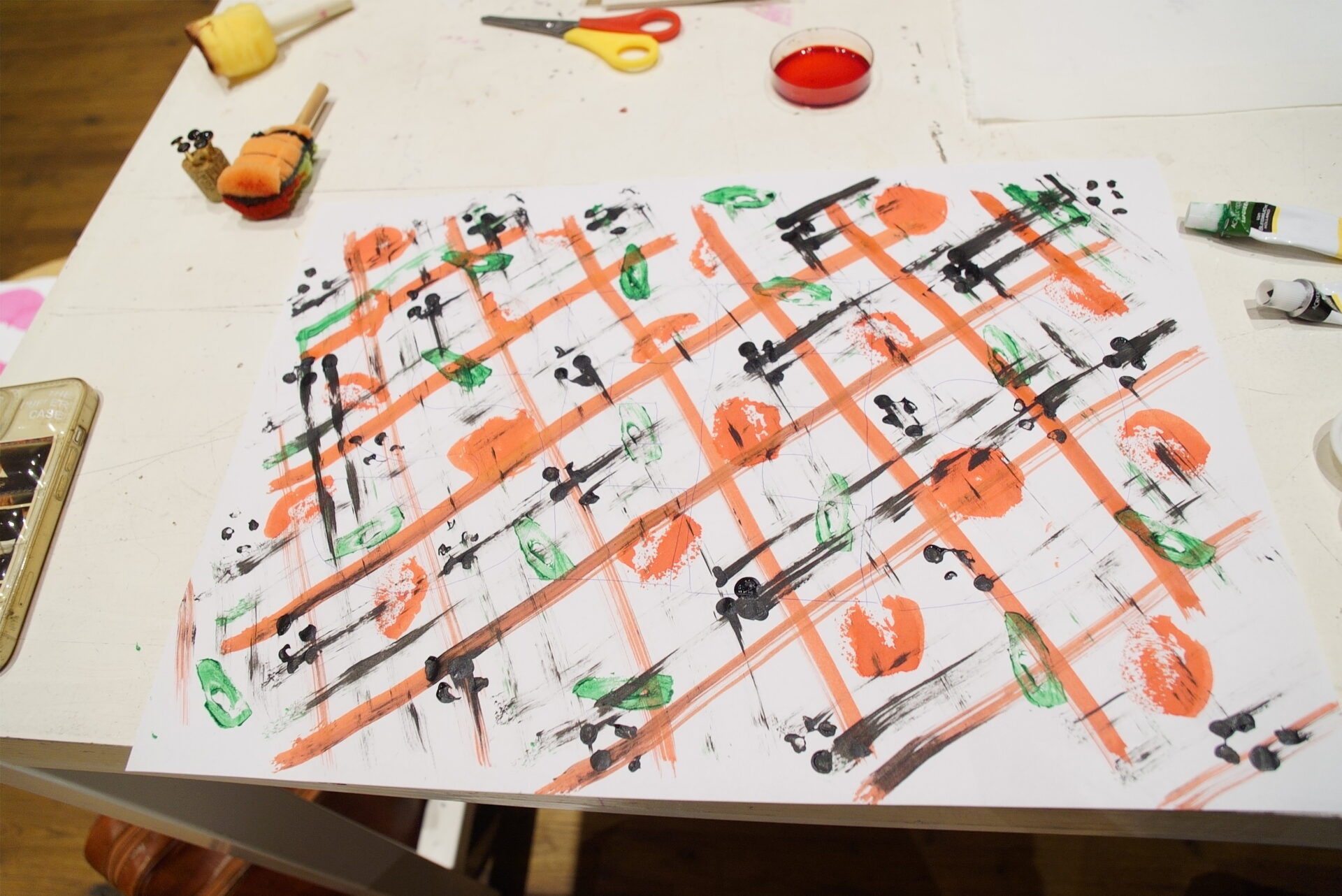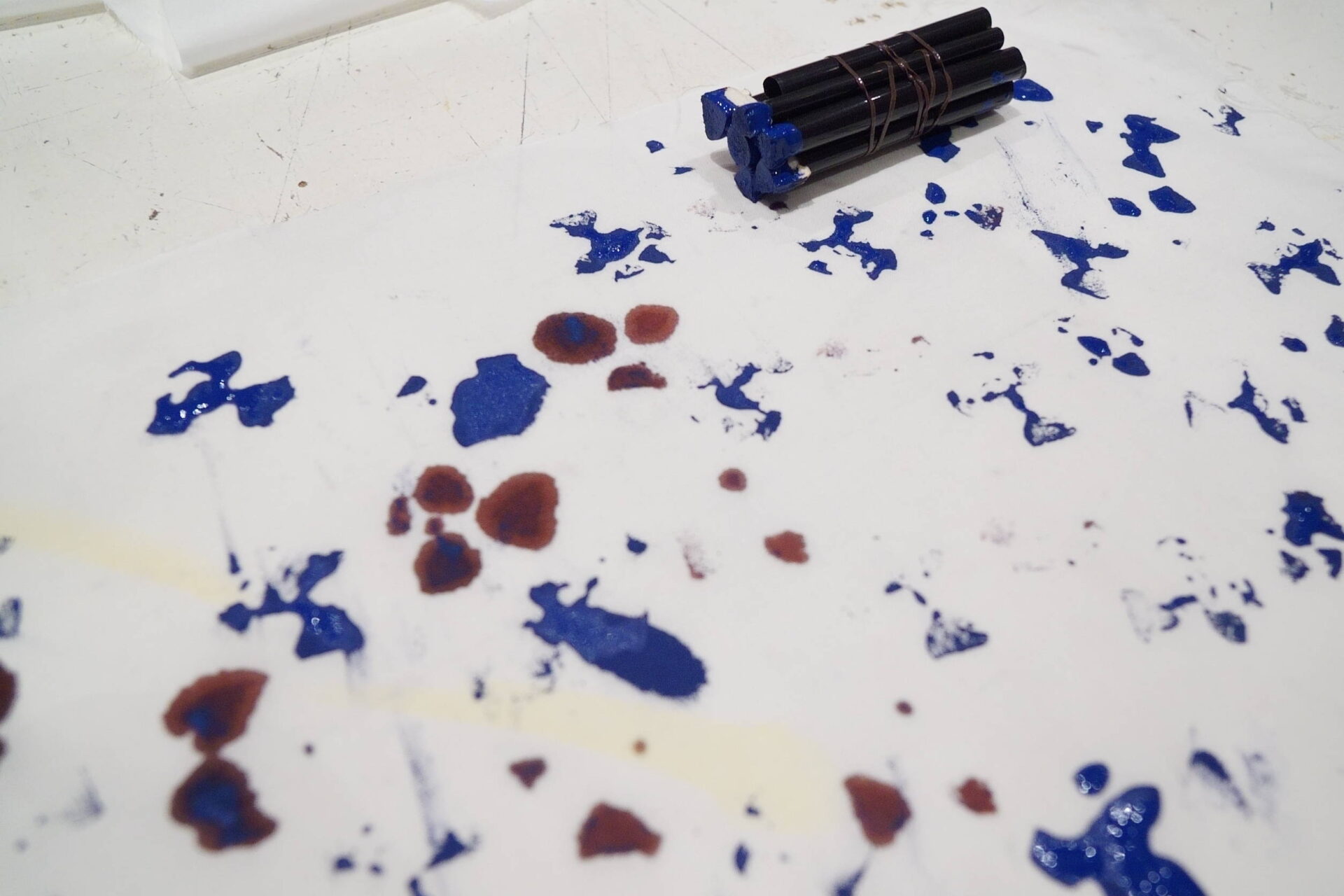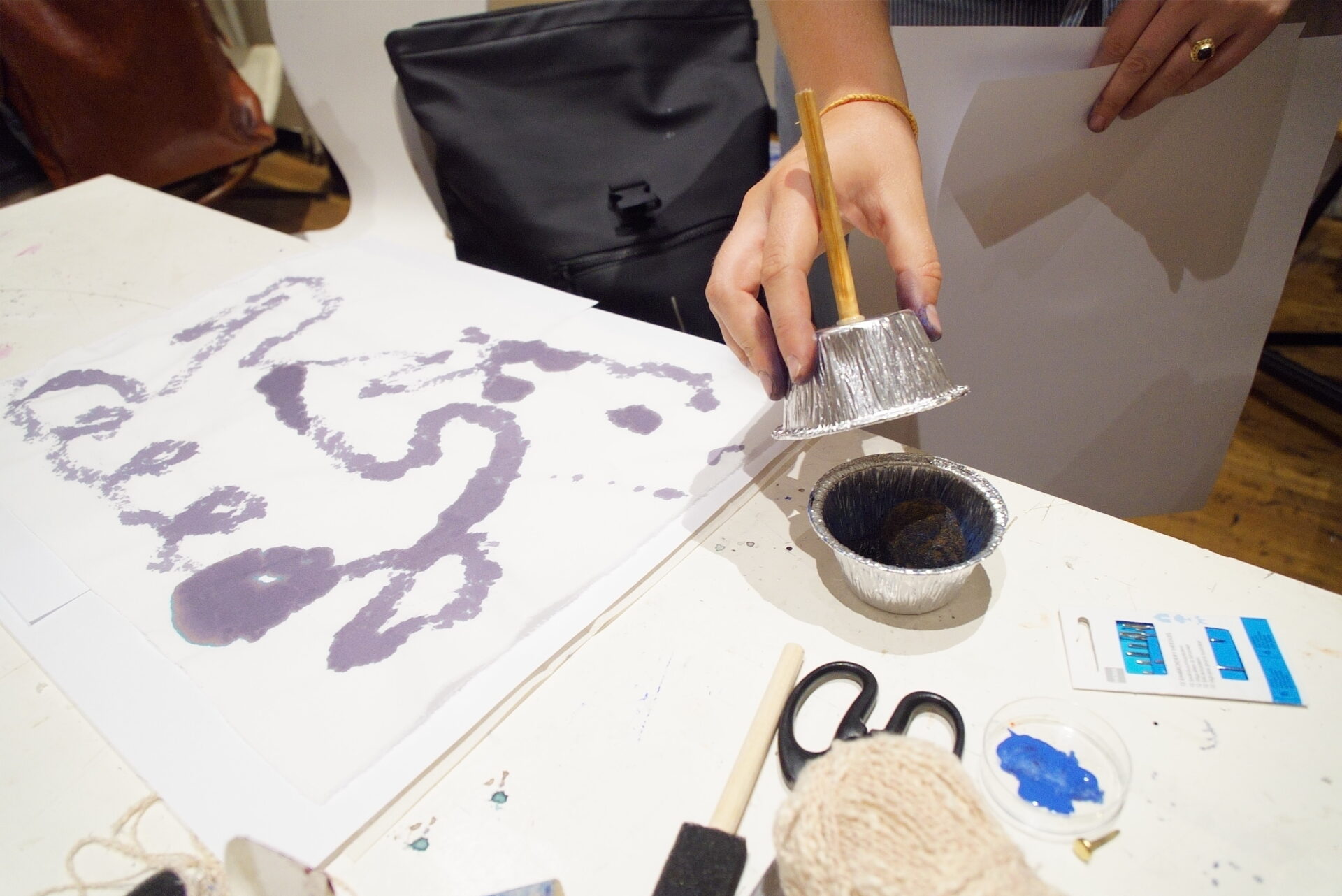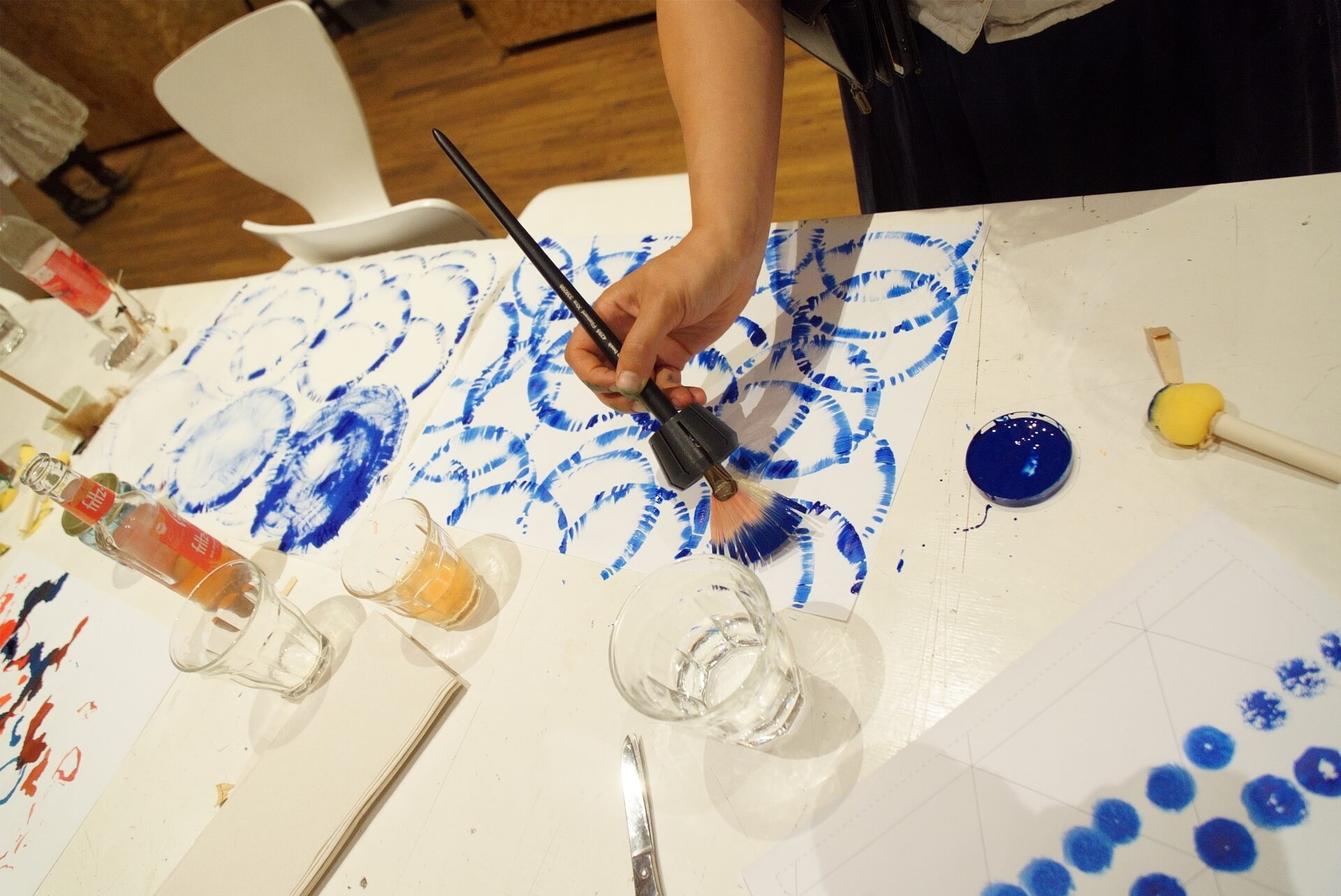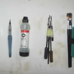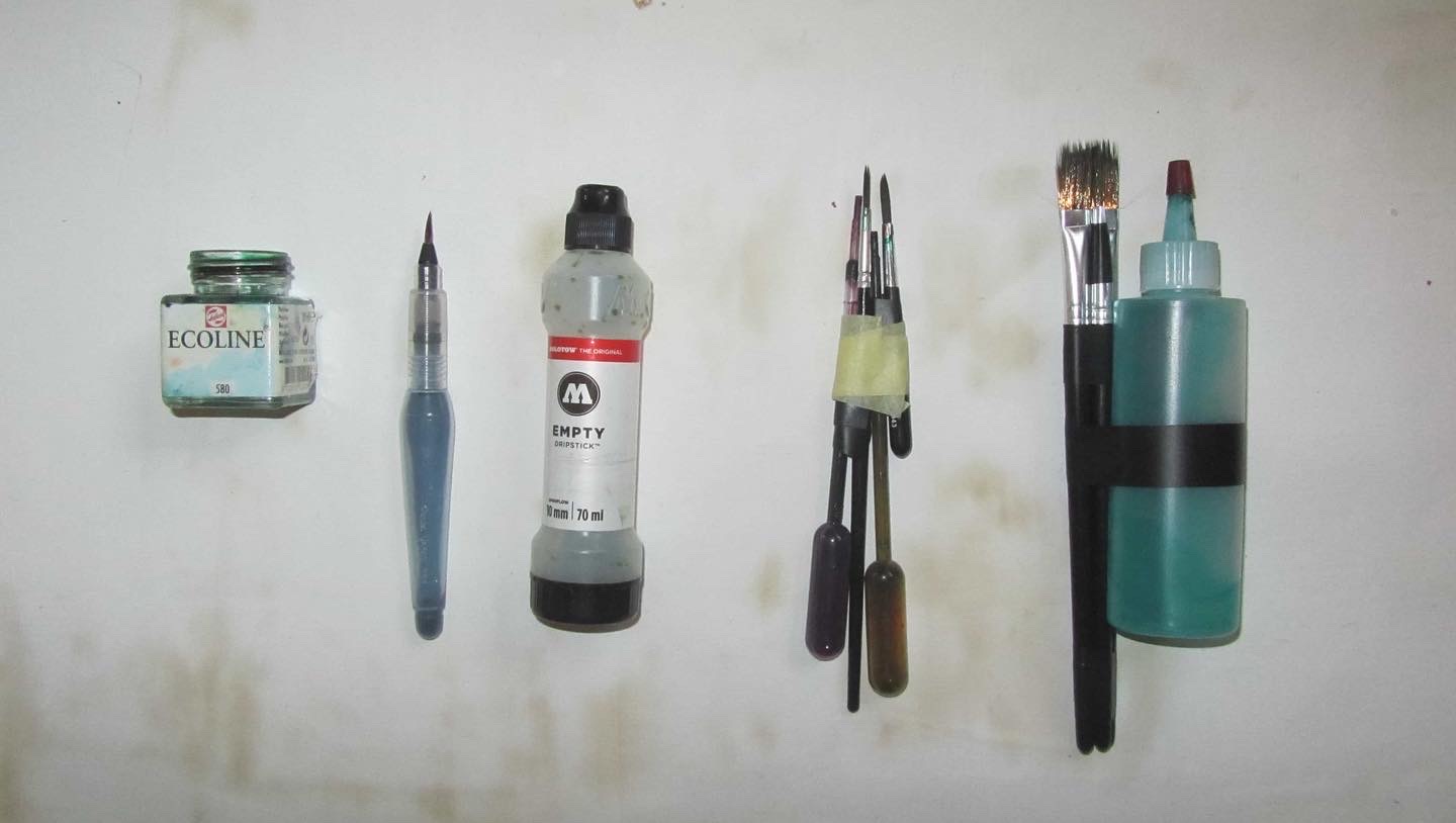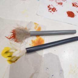 In 2024, Fabricademy students Carolina Beirão and Isobel Leonard continued the large format machine hacking, this time focusing more on developing interactive tools to control brush strokes and a water pump to deposit ink on the canvas. They also developed brushes for their hack, with a hollow 3D printed insert to feed ink into.