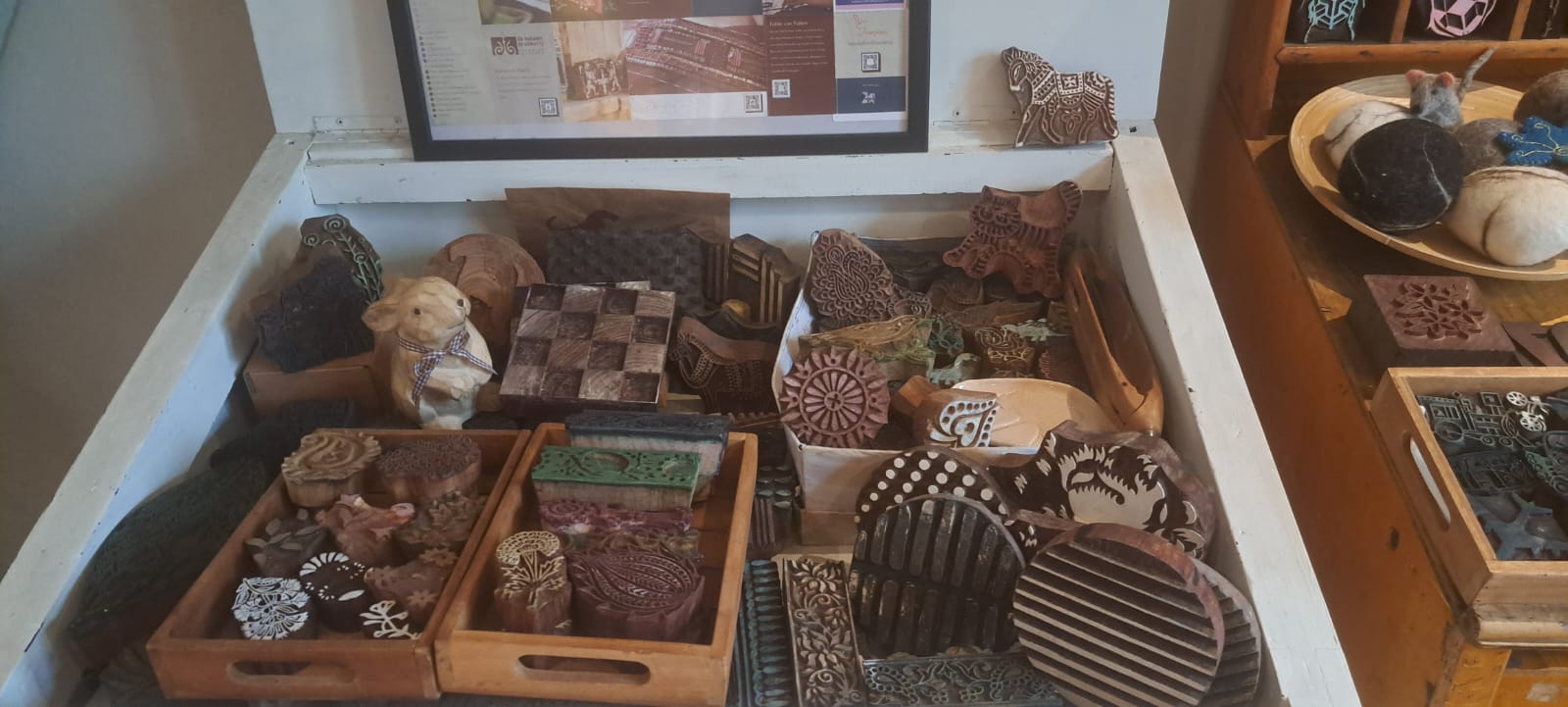 Block printing on cotton has been done in the Netherlands since the 17th century after the printing process had been brought to Europe from India by the East Indies Company. This legacy is safeguarded, displayed and shared by the Katoendrukkerij in Amersfoort, the city where the first cotton printing workshop was opened in 1678.1 Here, Nathalie Cassée has a large collection of historical and contemporary blocks and other tools for printing on textiles from the Netherlands and abroad. Contemporary blocks are carved by hand by artisans in India. She also has a small CNC mill to experiment with in-house block making.