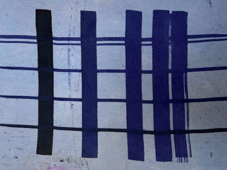 Is executed in 2 steps, drying and immersion dunging. Thorough drying of the textile of at least 1-2 days is required. The textile is ready when no smell is left behind on the printed areas. The dunging is traditionally done with dung, hence the name, to bring back the same process we use a cup of bran in 10 litres of water, with an addition of a table spoon of chalk to finalise the neutralisation of the solutions. The fixation process will ensure that the mordants wont leak into the water and affect one another.