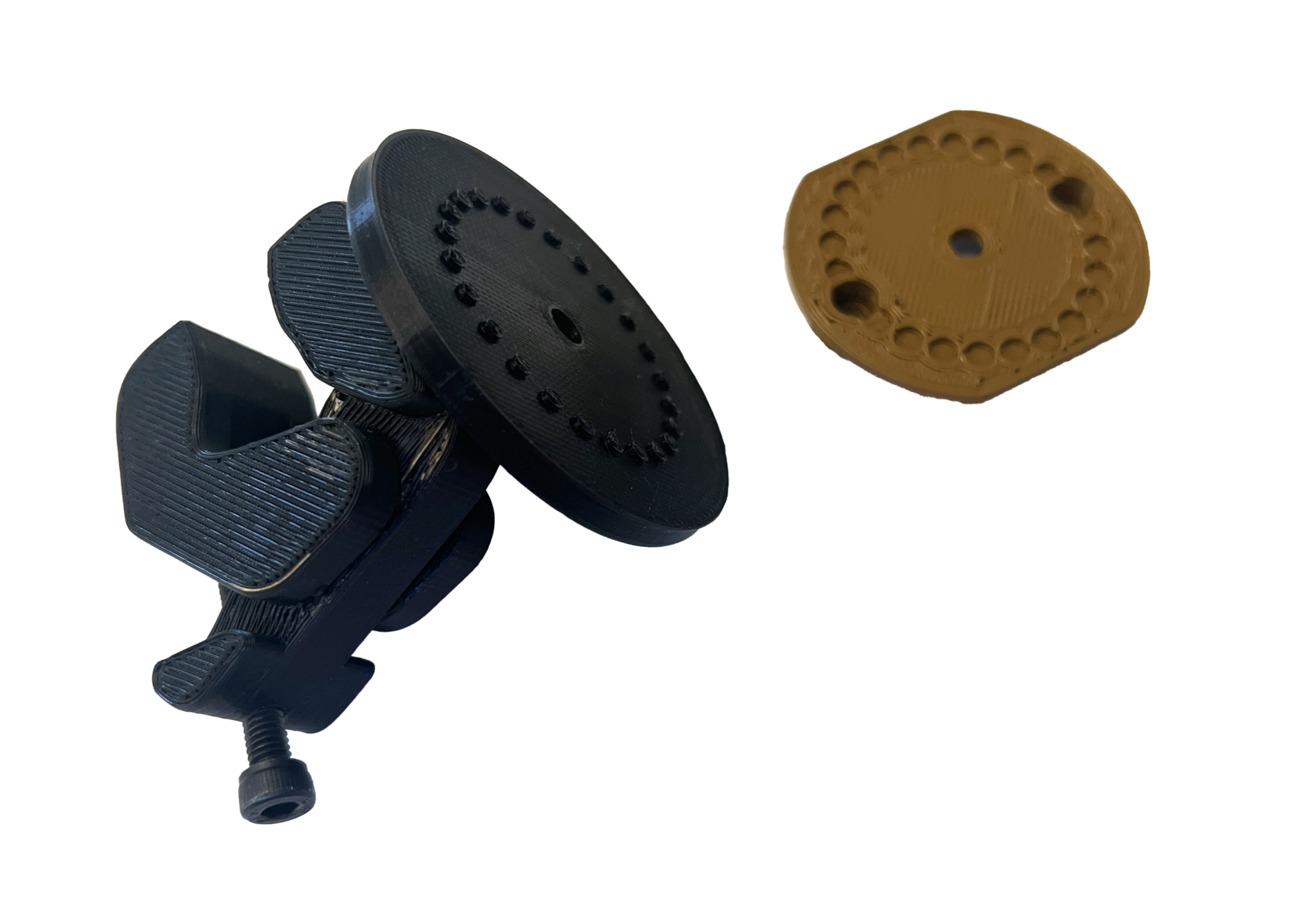 This tool holder is an improved alternative for the static and rotating tool holder described in Tool holder 1 development. This tool holder works well in combination with the Hollow parametric tool. The tool is kept in position by twisting the large bolt. The mechanism is called Kant twist clamping.