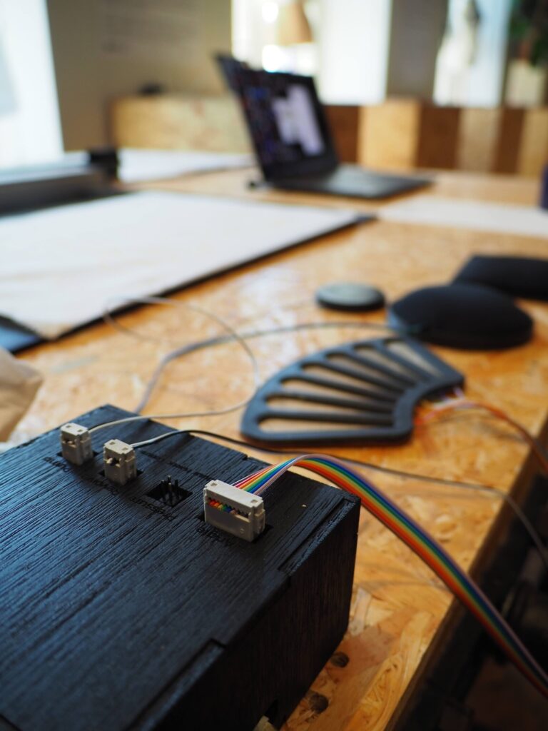 On April 10, the pilot research was presented to the audience present. After that, visitors were invited to try out the HaptiColor workflow themselves, and see the exhibition. The outline of the event can be found on the event page Interweaving Innovation: Presentation.